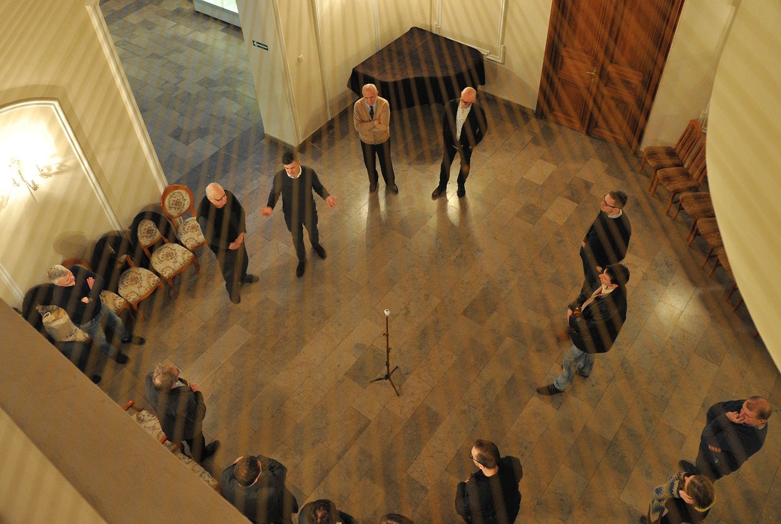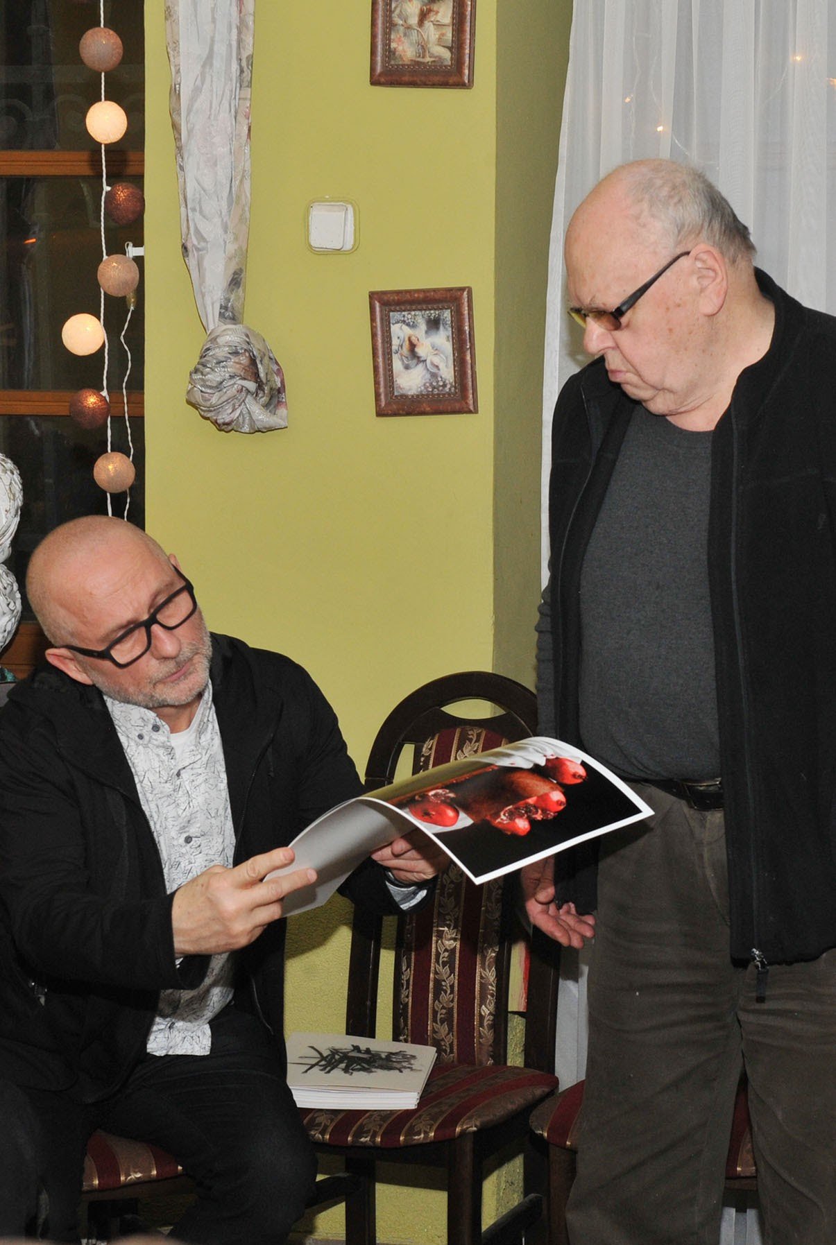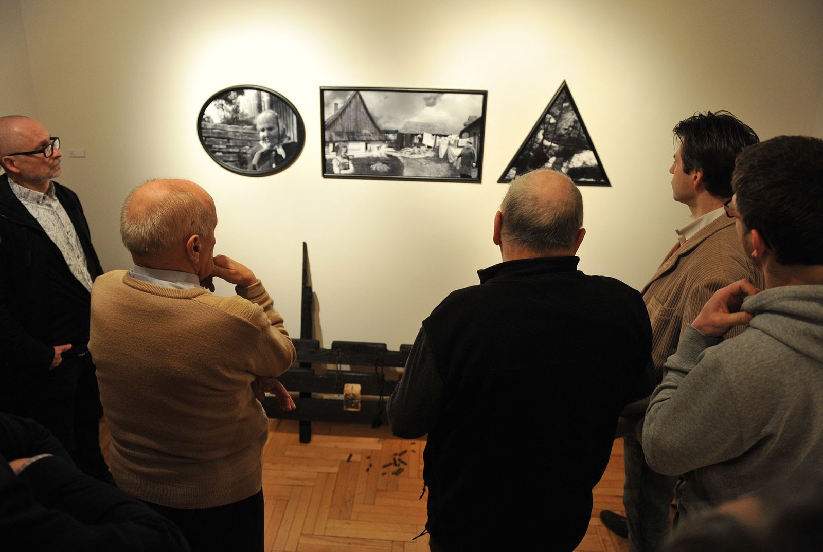 Przewodnikiem po wystawie był pan Paweł Dusza dyrektor Muzeum w Sosnowcu. Część fotograficzną omówił Jerzy Łakomski, który zaprezentował także swój, geometryczny, trzyelementowy zestaw prac pt. „Mój czarny potok”.