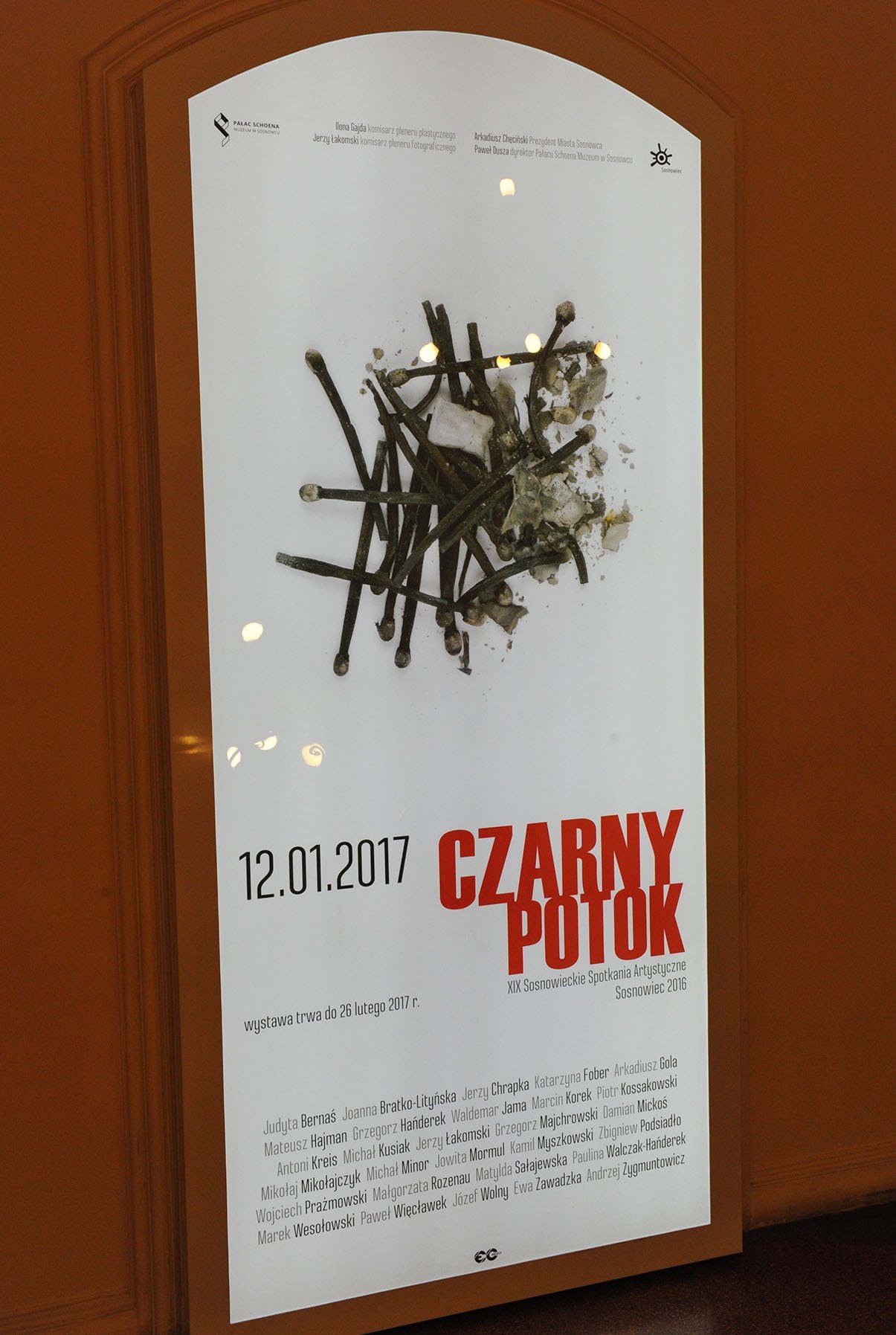 Prace 29 artystów eksponowane w salach Pałacu, są swobodną interpretacją niezwykle trudnej, rozliczającej się z wojenną przeszłością, treścią zawartą w powieści. Różnorodne formy wyrazu artystycznego, począwszy od malarstwa, poprzez fotografię, do rzeźby i przestrzennych instalacji, w sposób niezwykle sugestywny opowiadały o wojennej traumie opisanej w „Czarnym Potoku”.