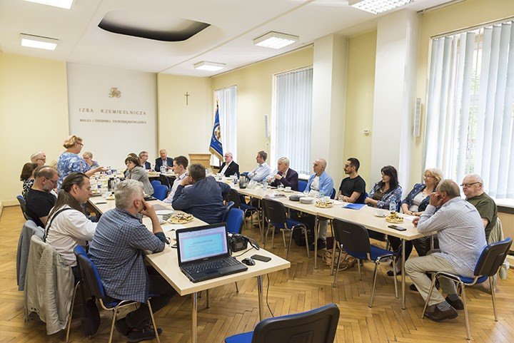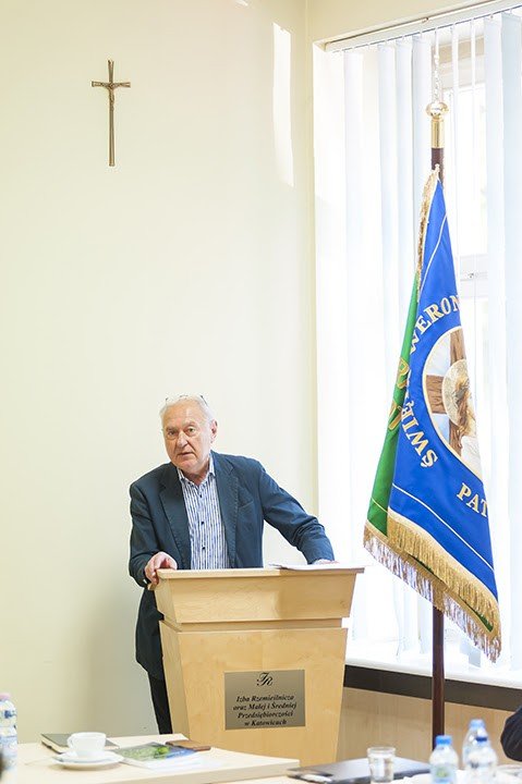 Po krótkim wstępie głos zabrał Pan Prof. dr hab. Jan Klimek, Prezes Zarządu katowickiej Izby Rzemieślniczej. W swoim wystąpieniu podkreślił, jak ważna dla rozwoju rzemiosła jest współpraca obu organizacji, a także przybliżył plany dotyczące wsparcia finansowanego i rozwoju MŚP w ramach Funduszy Europejskich.