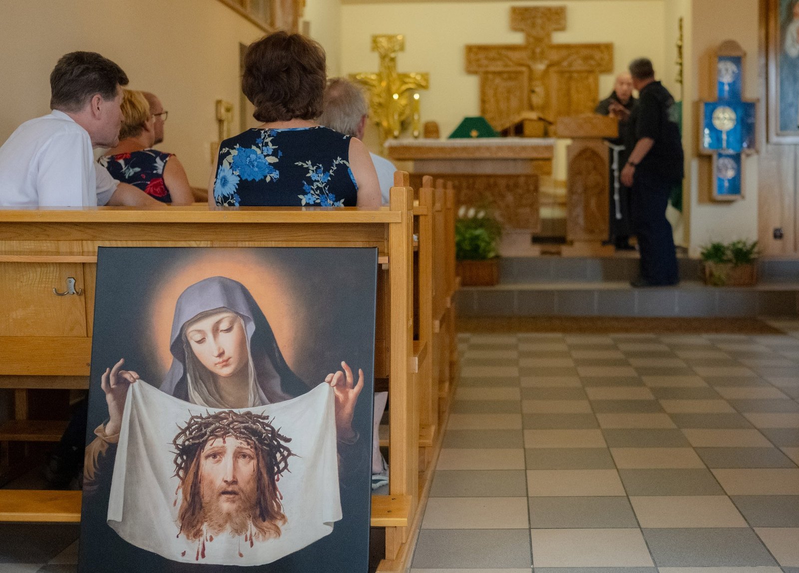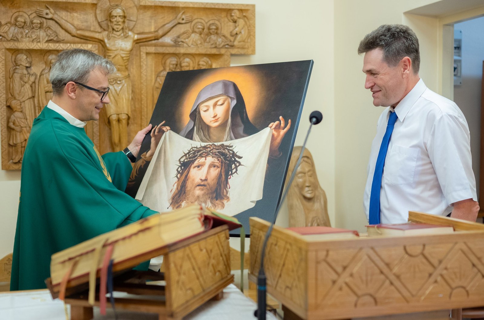 Uroczystą mszę zakończyło wręczenie księdzu, daru w postaci obrazu z wizerunkiem świętej Weroniki, ufundowanego przez, jak to w naszej tradycji - poprzedniego organizatora Weroniki - Roberta Bogudzińskiego z Lublina.